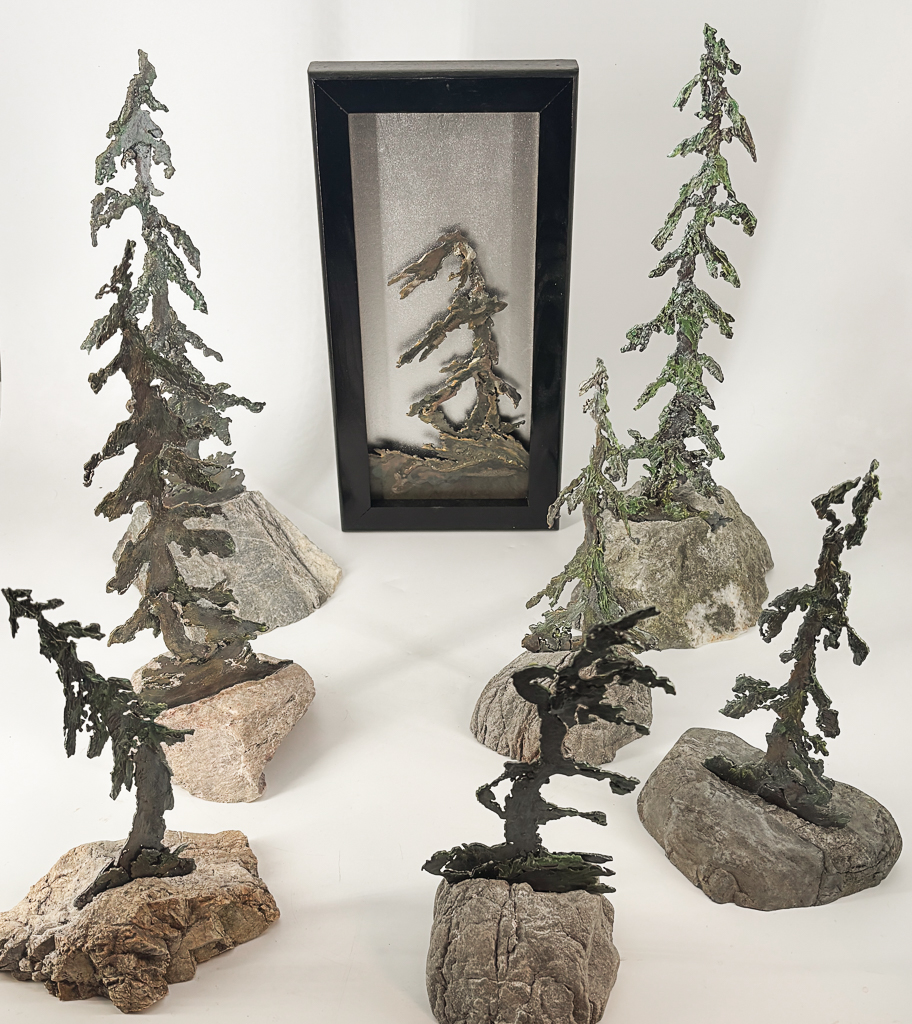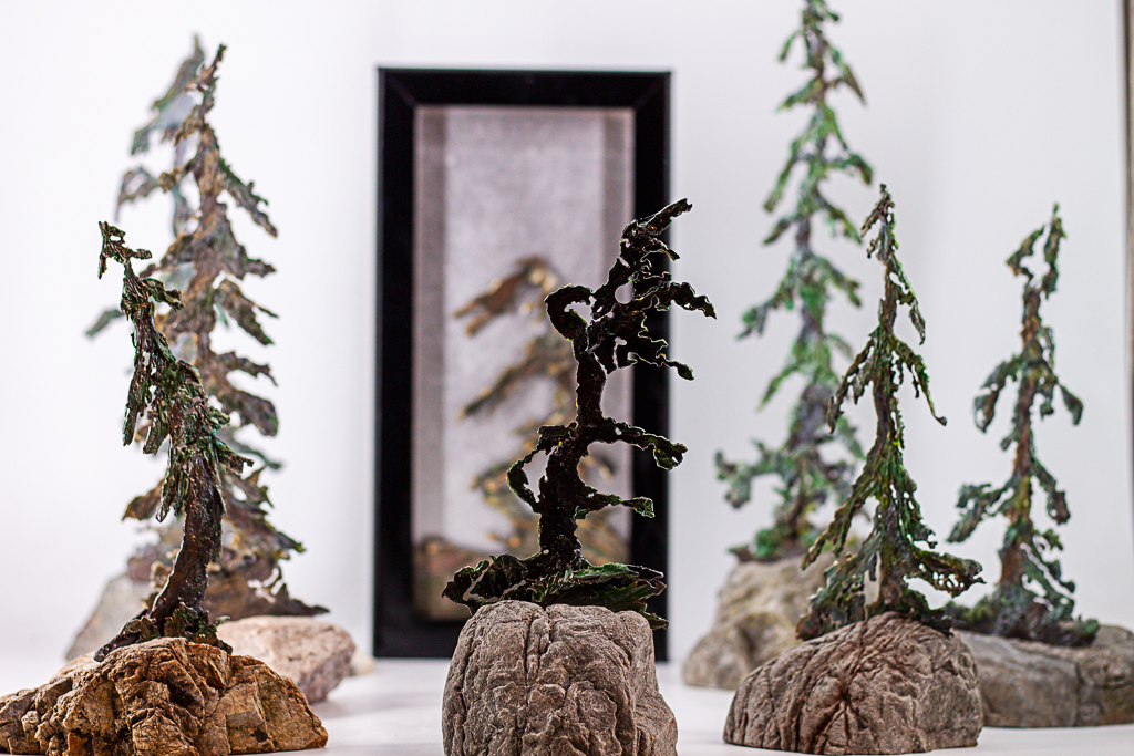 Stone, Wood, Metal, Pigmented Resin and Copper Wire
