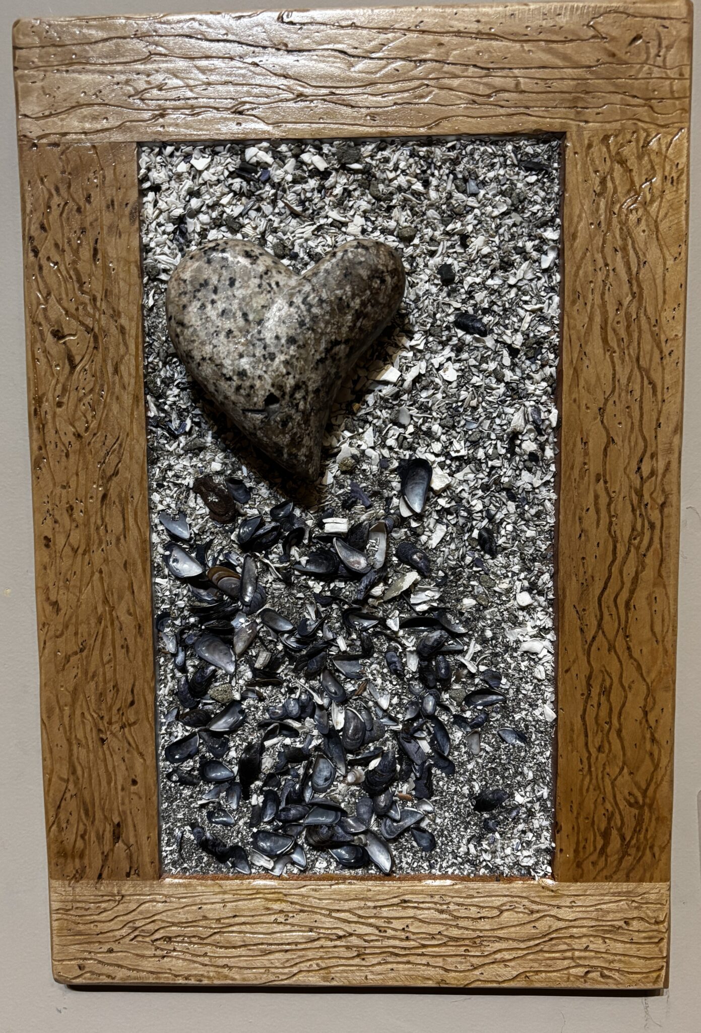 Maple, Seashells, Stone, Scree, resin,epoxy and pigmented stone powders pearls
